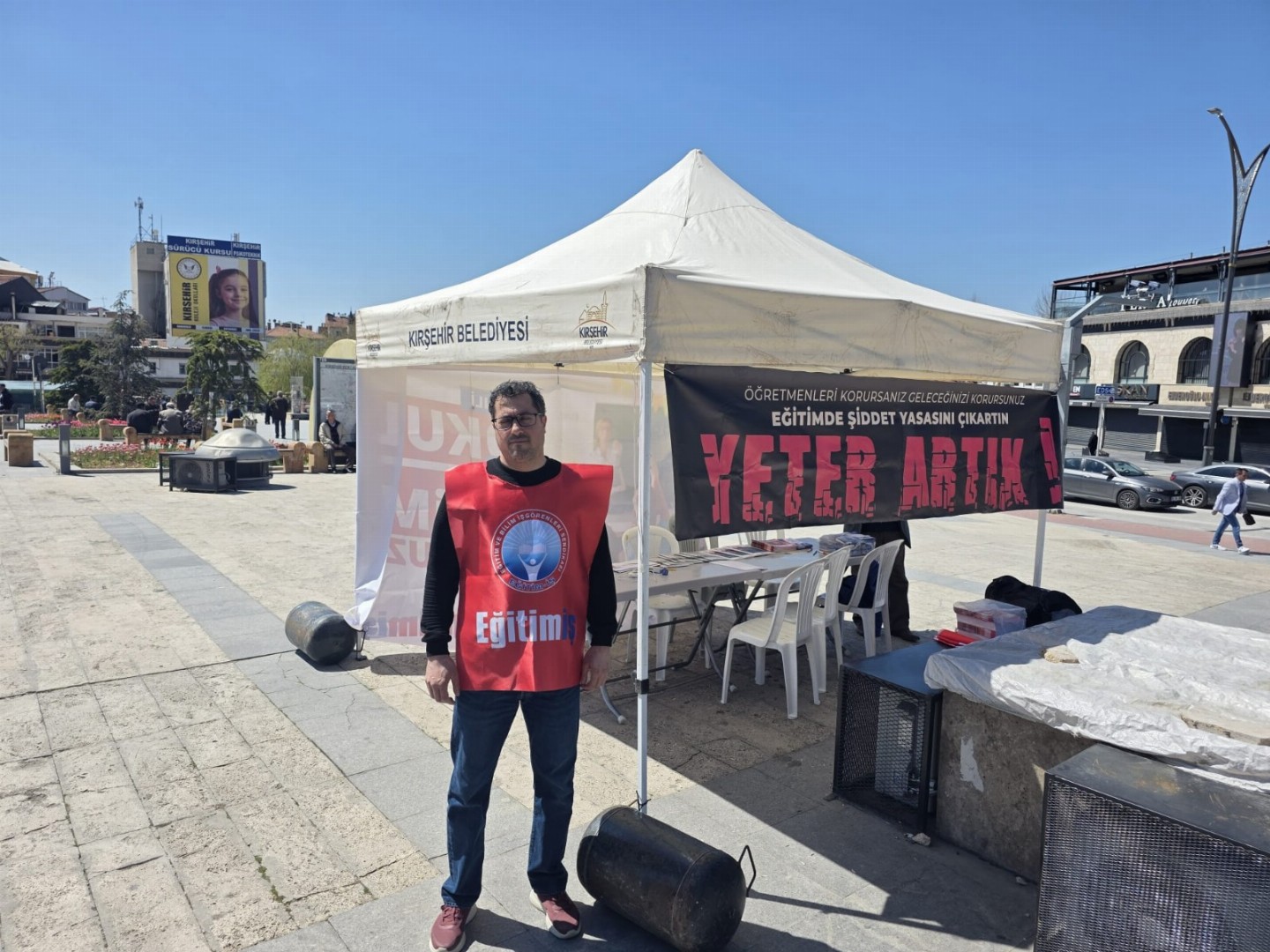 Eğitim-İş Kırşehir Şube Başkanı Öner Bayık ve sendika üyeleri, kent merkezinde kurdukları imza çadırıyla eğitimde yaşanan sorunlara dikkat çekti. "Güvenli Okul, Sağlıklı Eğitim" talebiyle başlatılan kampanya kapsamında vatandaşlarla birebir temas kuran Bayık, öğrencilerin ve eğitim emekçilerinin karşı karşıya olduğu risklere vurgu yaptı.