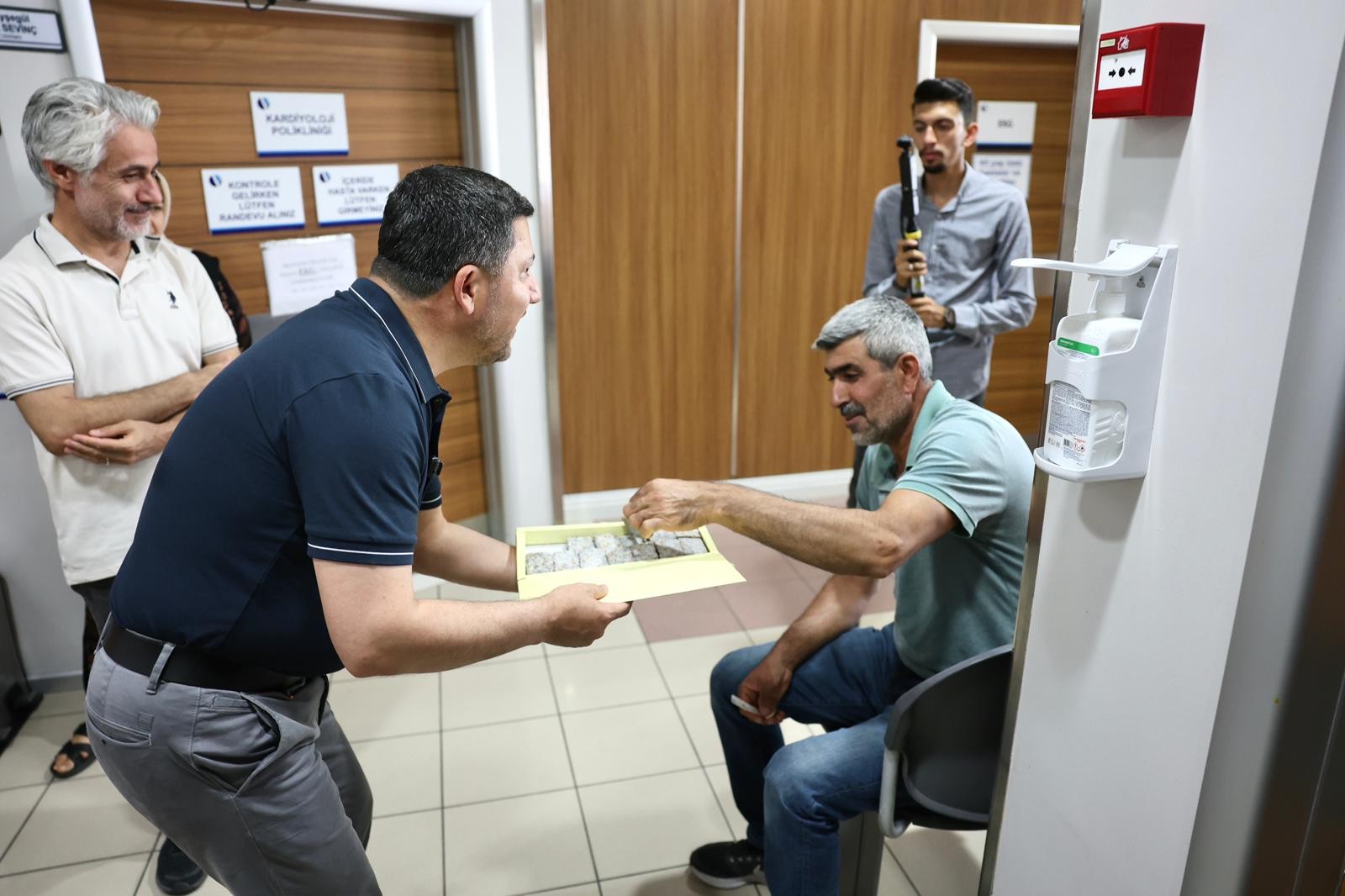 Nevşehir Belediye Başkanı Rasim Arı, hastane ziyaretleri kapsamında sünnet olan bir çocuğun doğum gününü sürpriz pastayla kutlarken, vatandaşlara da çeşitli ikramlarda bulundu. Hasta ve hasta yakınlarıyla sohbet eden ve geçmiş olsun dileklerini ileten Başkan Rasim Arı bol bol hatıra fotoğrafı çektirdi.