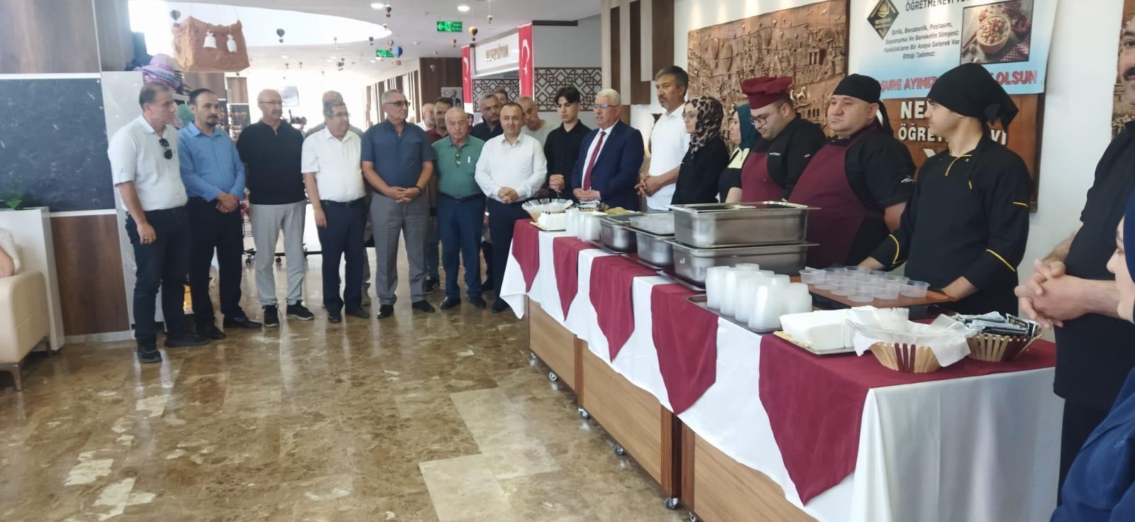 İl Millî Eğitim Müdürü Yusuf Yazıcı, yöneticiler ve misafirler; Muharrem ayı vesilesiyle Nevşehir Öğretmenevi ve Akşam Sanat Okulu Müdürlüğünün ev sahipliğinde düzenlenen aşure dağıtım etkinliğine katıldılar. Birlik ve beraberliği yansıtan millî ve manevi değerlerin yaşatılarak gelecek kuşaklara aktarılmasının önemli olduğunu ifade eden İl Millî Eğitim Müdürü Yusuf Yazıcı, etkinliğin düzenlenmesinde emek veren ve katkı sağlayan Nevşehir Öğretmenevi ve ASO Müdürlüğüne ve katılım sağlayan herkese teşekkür etti.