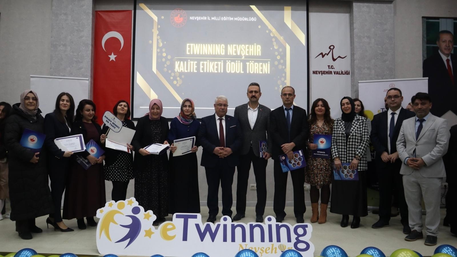 Nevşehir İl Millî Eğitim Müdürlüğü koordinesinde yürütülen eTwinning projeleri kapsamında, "Kalite Etiketi" ve "eTwinning Okulu Levhası" almaya hak kazanan öğretmenlerimiz ve okullarımız için düzenlenen eTwinning Kalite Etiketi Ödül Töreni, Nevşehir Valilik Salonu'nda gerçekleştirildi.