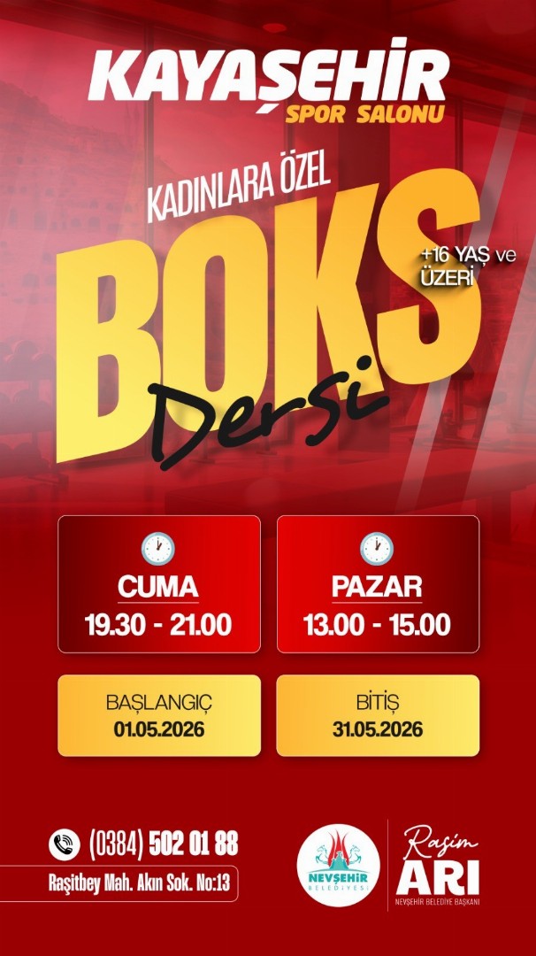 Nevşehir Belediyesi, kadınların sosyal hayata daha aktif katılımını destekleyen projelerine bir yenisini ekledi. Bu kapsamda, Kayaşehir Spor Salonu’nda düzenlenecek “Kadınlara Özel Boks Dersi” ile sporda yeni bir dönem başlıyor.