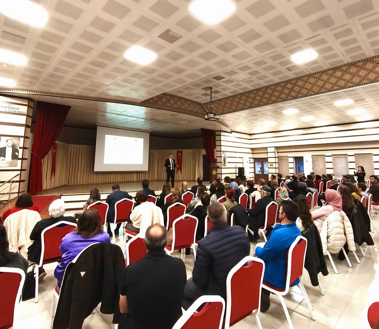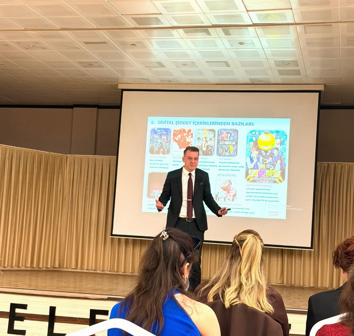 Eğitim Bilimleri Uzmanı, Pedagog Seyit Taylan KAPUCU’nun aynı zamanda Kapadokya Sanayi ve İş Dünyası Federasyonu (SİFED) Genel Sekteri ve Kapadokya Rotary Kulübü 2026-27 Dönem Başkanı ünvanlarıyla konuşmacı olarak katıldığı programda, şiddetin fiziksel, psikolojik ve ekonomik yanları detaylarıyla ele alındı.